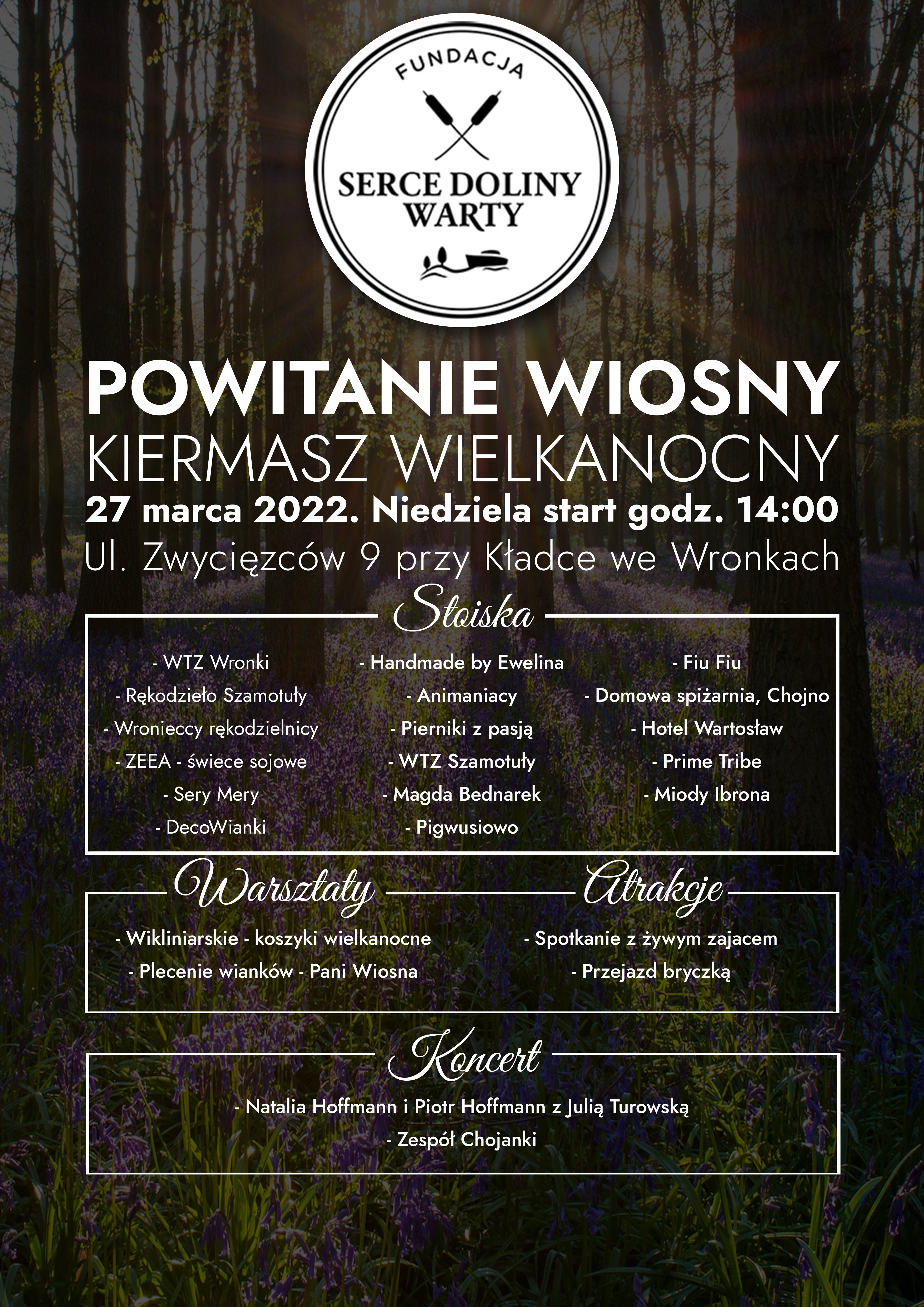 Spotkajmy się na świątecznym kiermaszu i pokażmy naszą jedność i miłość! Zapraszamy rodziców oraz ich pociechy do wspólnej zabawy 27 marca, przy kładce we Wronkach! Tego dnia Fundacja Serce Doliny Warty zaprasza wszystkich chętnych do wzięcia udziału w zabawach i atrakcjach, które dla was przygotowaliśmy wspólnie z naszymi sponsorami!